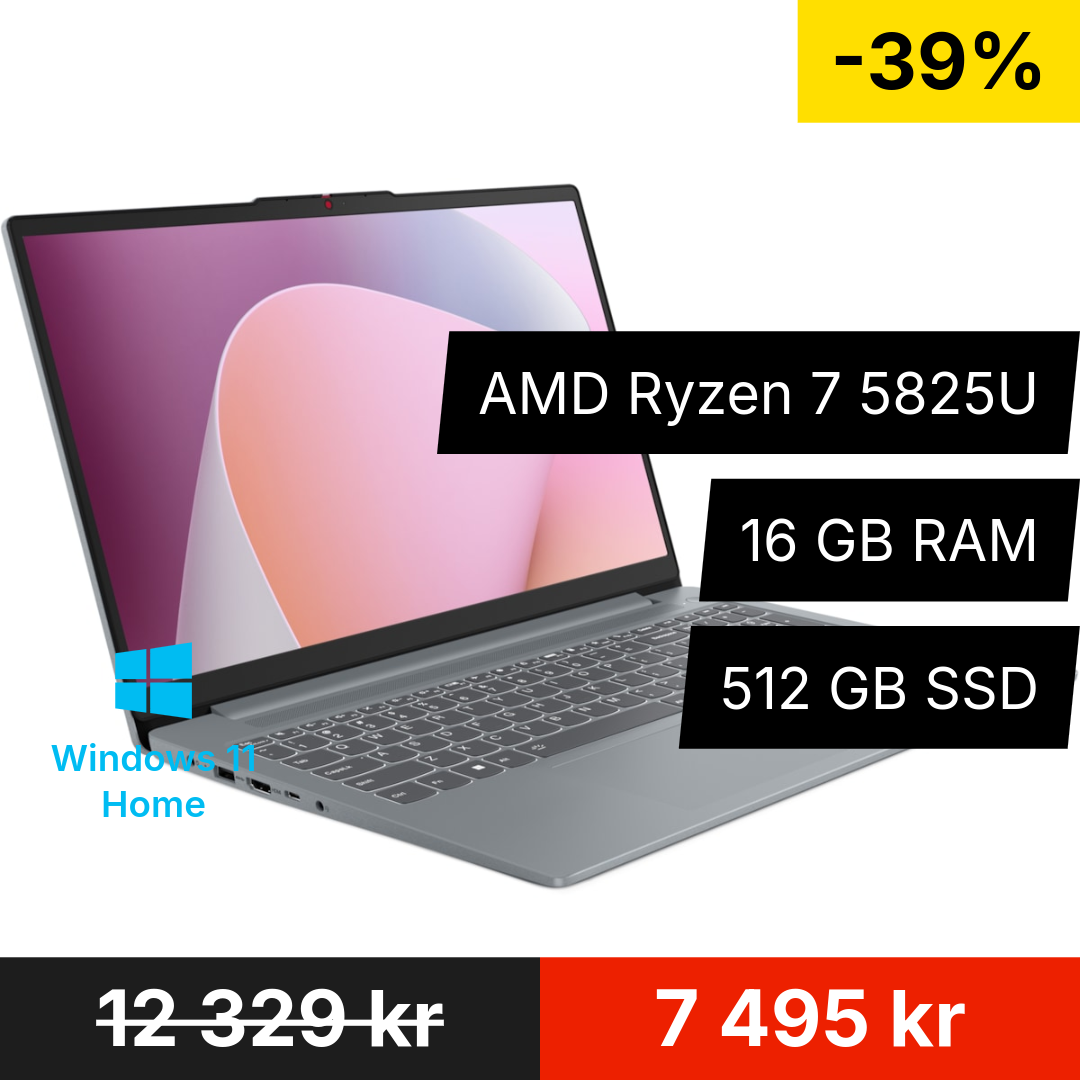 Lenovo IdeaPad Slim 3 Gen 8 är en elegant och kraftfull 15,6-tums laptop som kombinerar bärbarhet, pålitlighet och vass prestanda. Perfekt för studenter, distansarbetare och alla som är på språng.