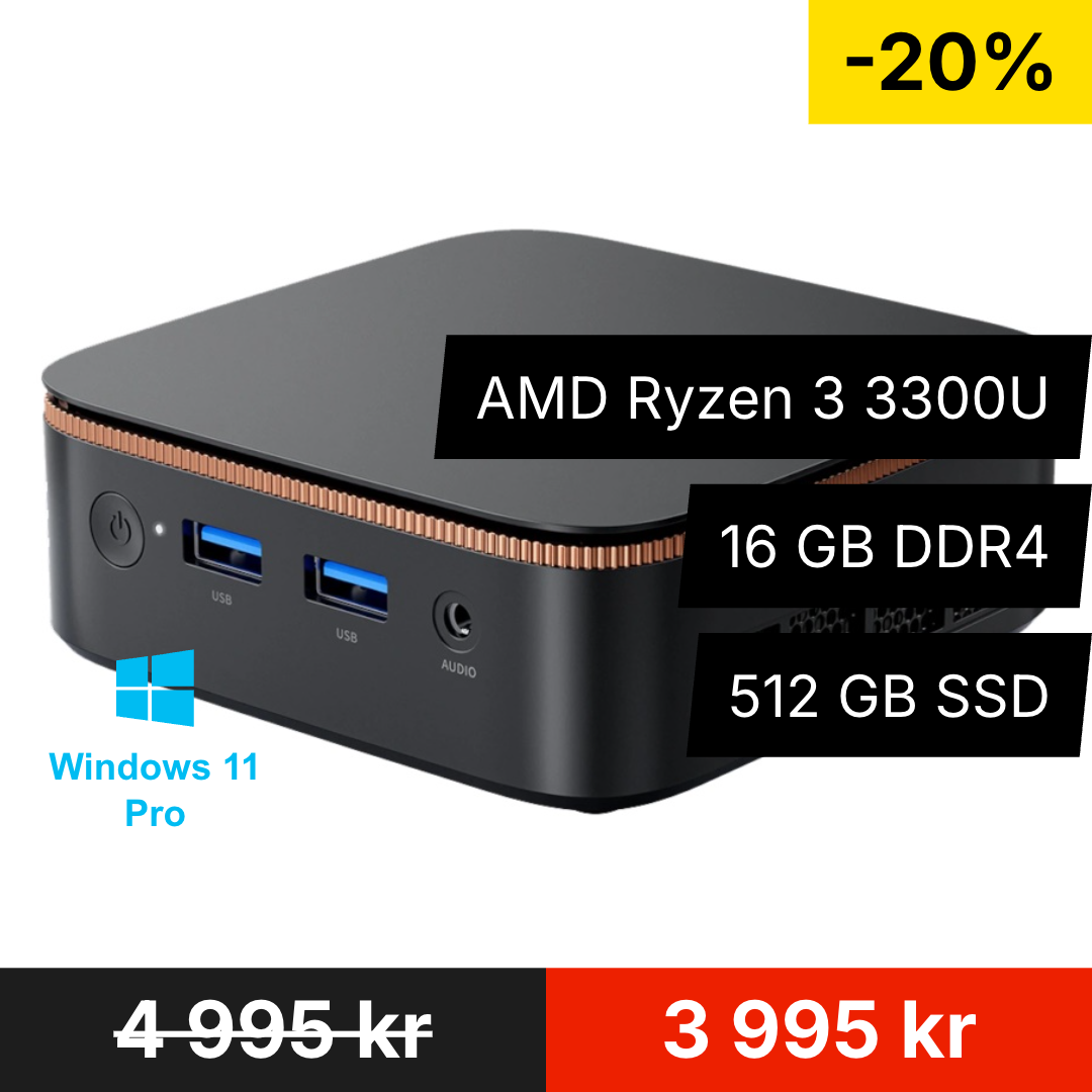 | | | | En kompakt och prisvärd Mini PC med Ryzen 3 3300U, 16GB RAM och 512GB SSD – ett smidigt val för kontor, enklare multitasking och platsbesparande arbetsytor.