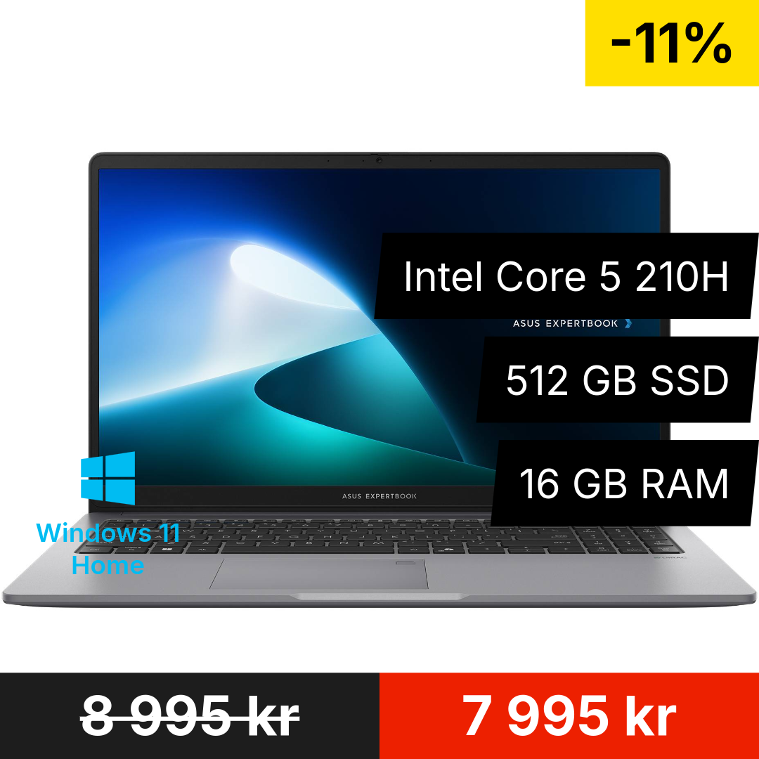 | | | | ExpertBook 15 är en stilren, kraftfull och pålitlig laptop för dig som behöver hög prestanda i ett smidigt format. Med den nya Intel Core 5 210H i centrum får du modern kraft, effektivitet och smidighet. |