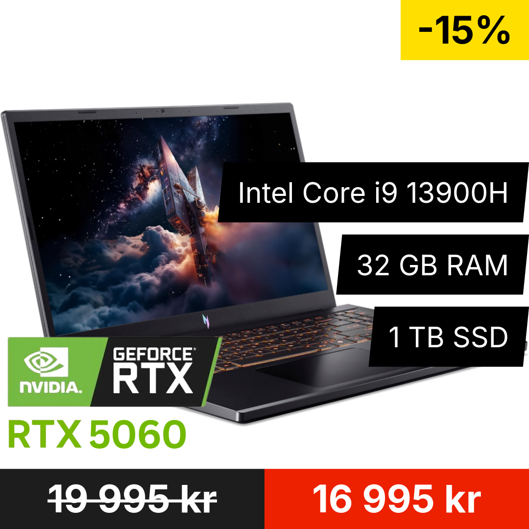 | Med en 13:e generationens Intel Core i9-processor och hela 32 GB RAM hanterar Nitro V 15 enkelt både tunga spel, videoredigering och multitasking utan att tappa fart. |