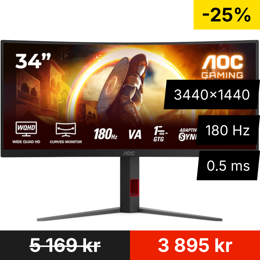 | Den här kurvade modellen är särskilt framtagen för gamers som inte vill kompromissa – oavsett om det gäller reaktionstid, bildflyt eller visuell inlevelse. |
